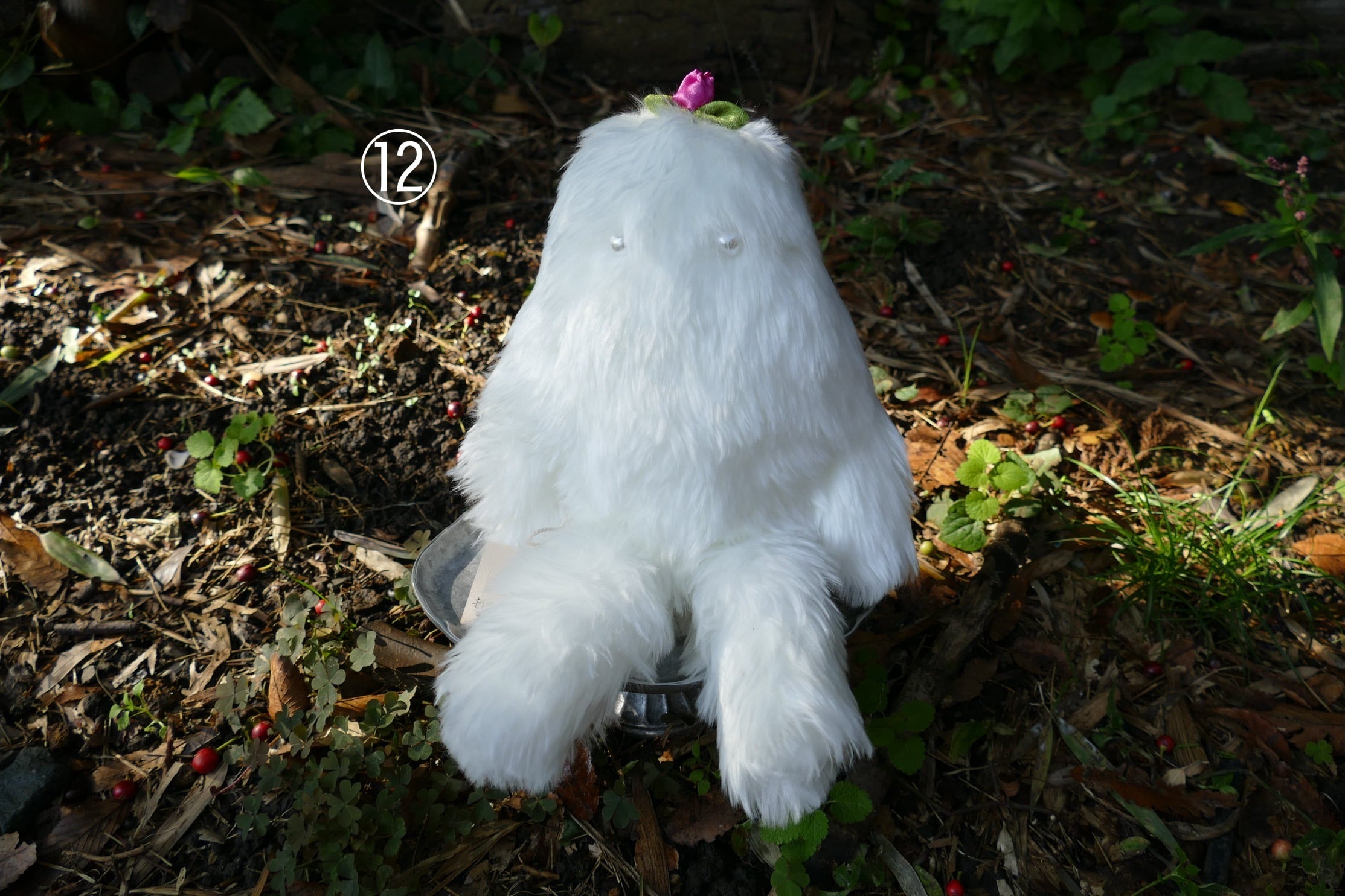 お尻、足先に専用のペレットビーズが入っており、座って自立します。