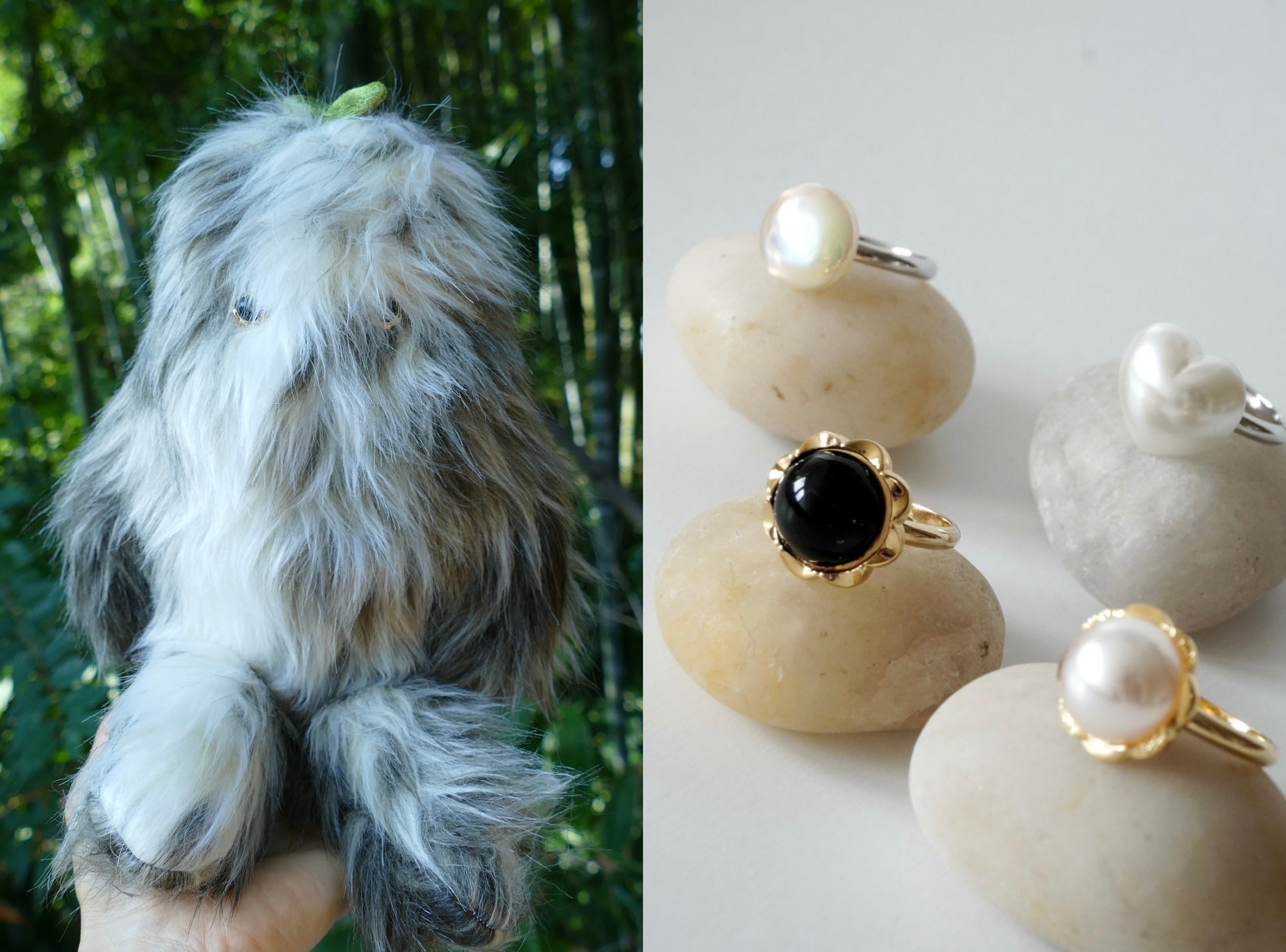 もけもけのぬいぐるみに使用した瞳のボタンで、masco poloがアクセサリーを作ってくれました。