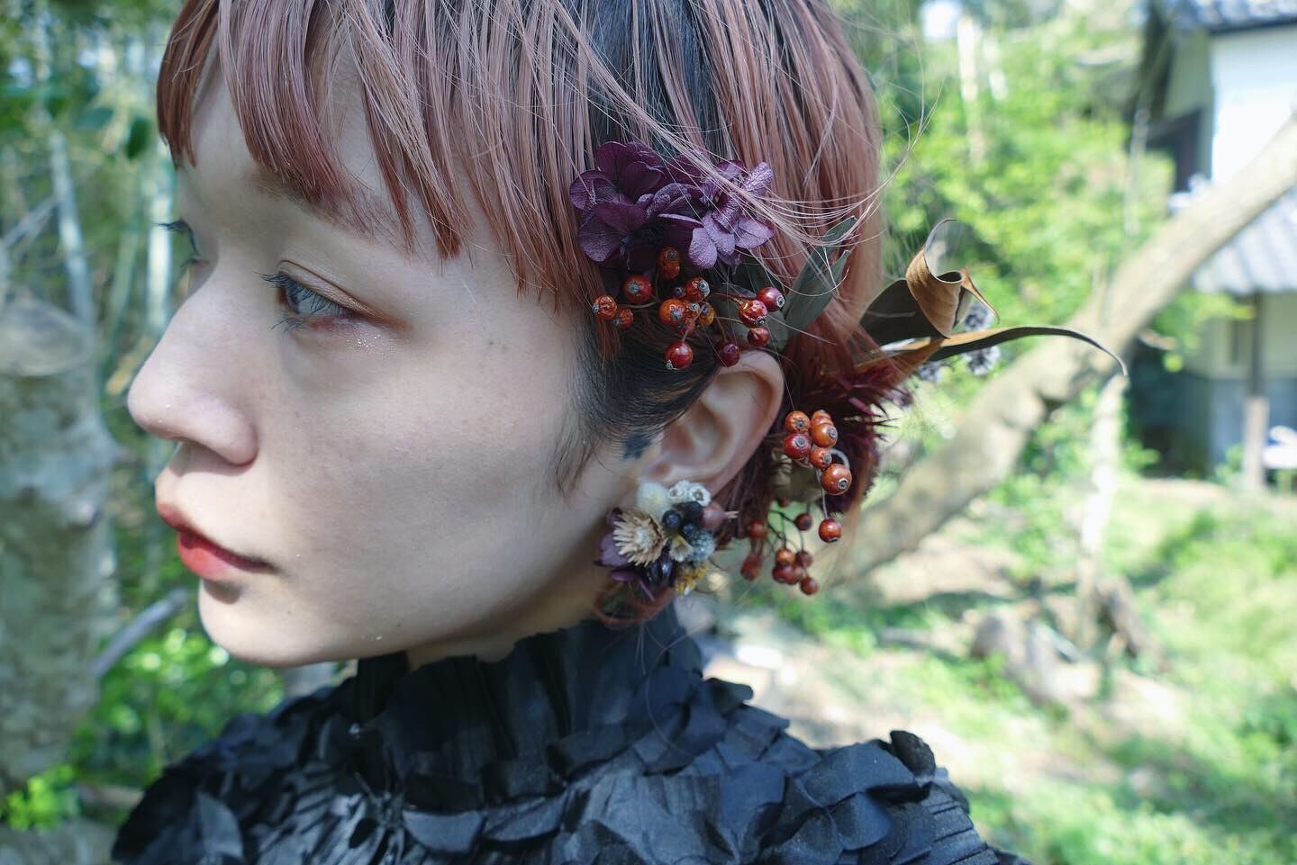 耳の上部に着けても可愛いですよ。