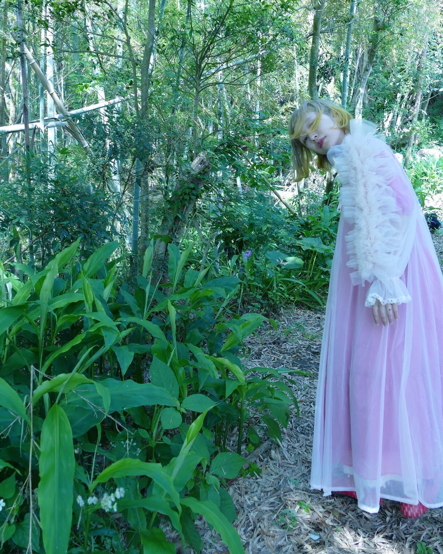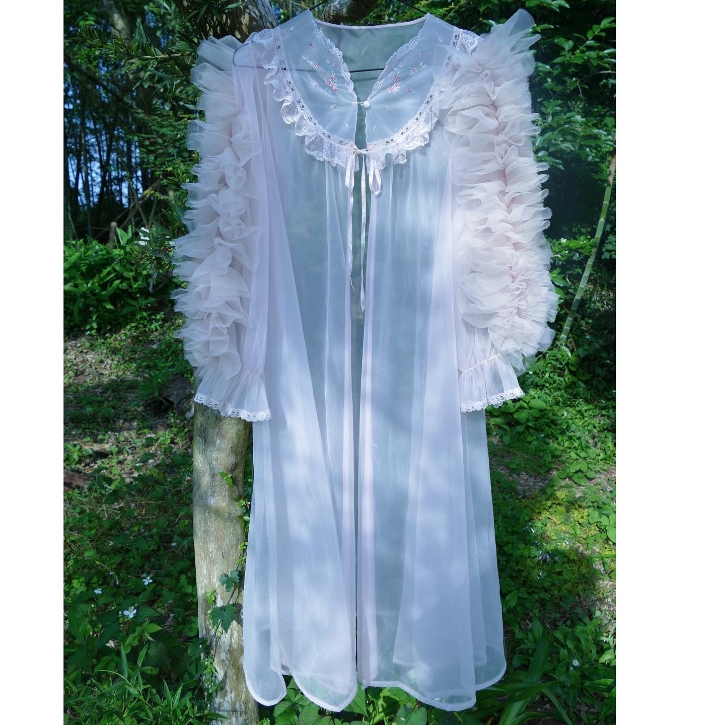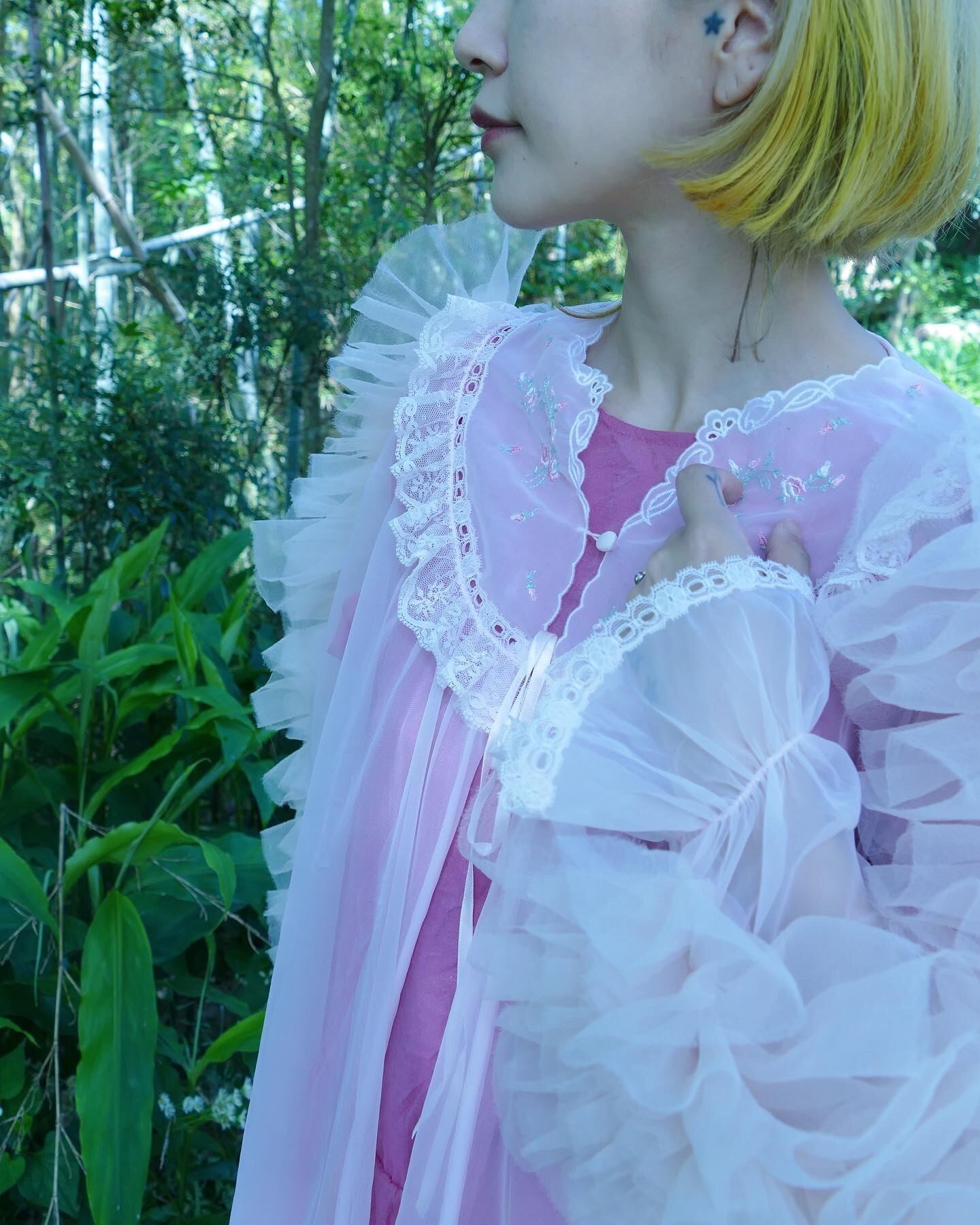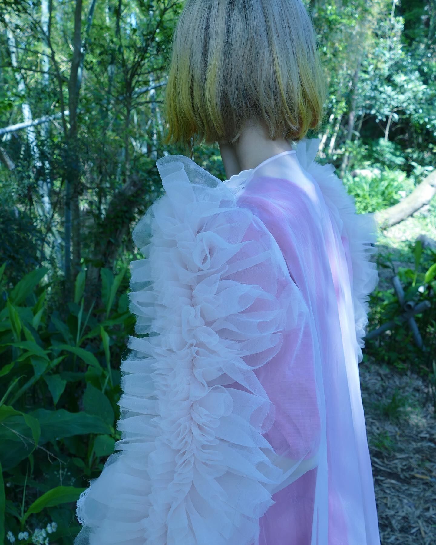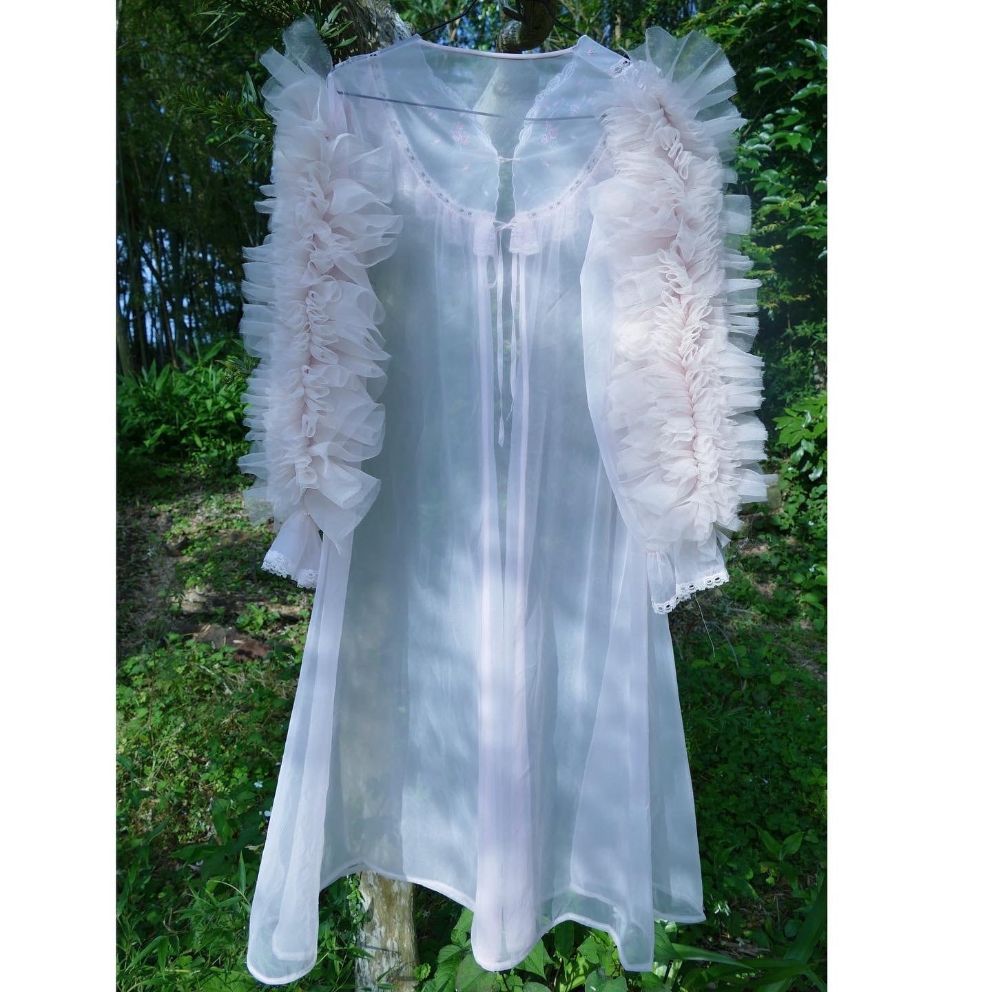 オーガンジーのガウン。袖がボリュームたっぷり。