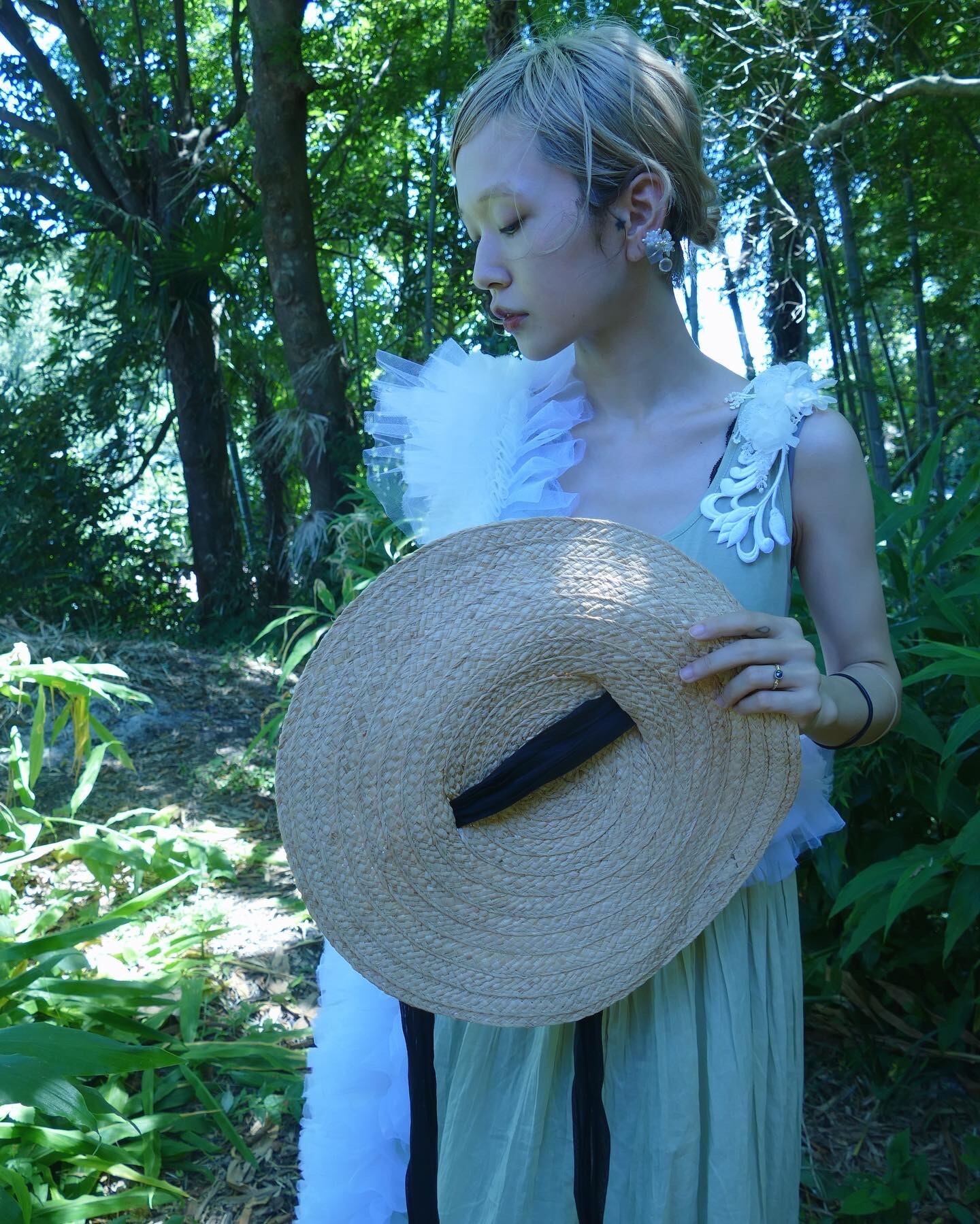 ゆったりとした薄手のコットン素材の軽やかなノースリーブワンピースの左サイドに、チュールのフリルをたっぷりと施しました。スペシャルな1枚です。