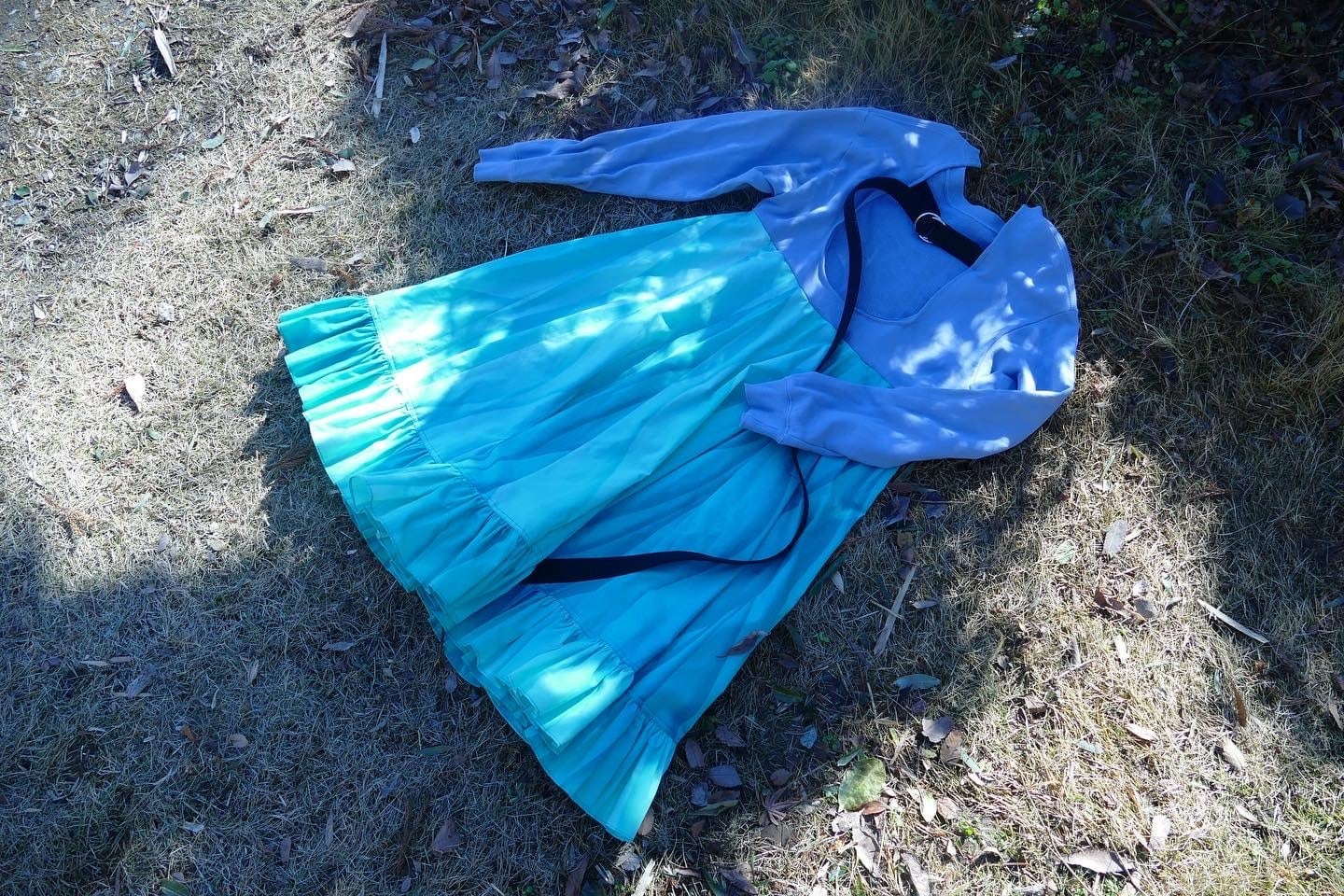 古着のスウェット、ドレス、スカートなどをリメイクしてワンピースに仕立てました。