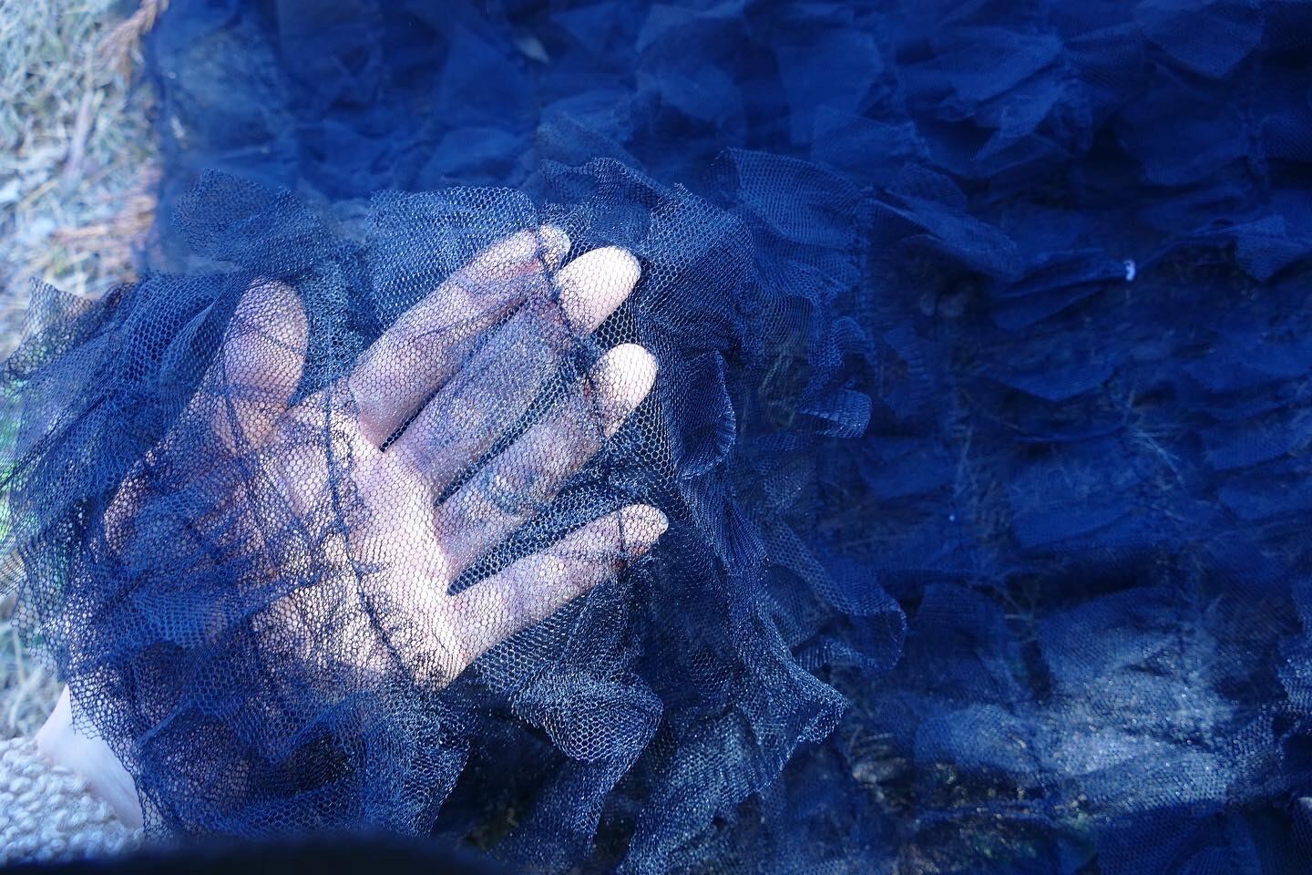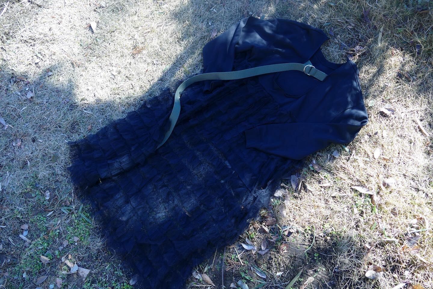 透け感があるフリルたっぷりなスカートと、月の満ち欠けが胸元にプリントされたスウェットをワンピースにしました。膝上までペチコードがついています。