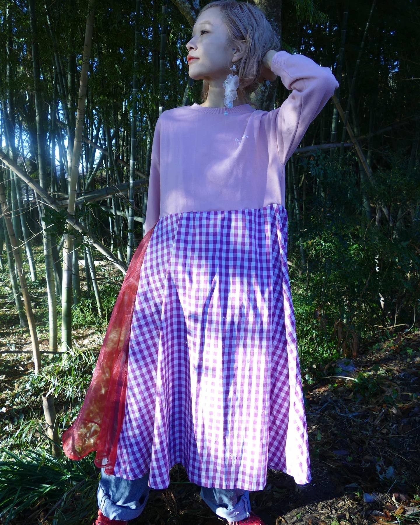 古着のスウェット、ドレス、スカートなどをリメイクしてワンピースに仕立てました。