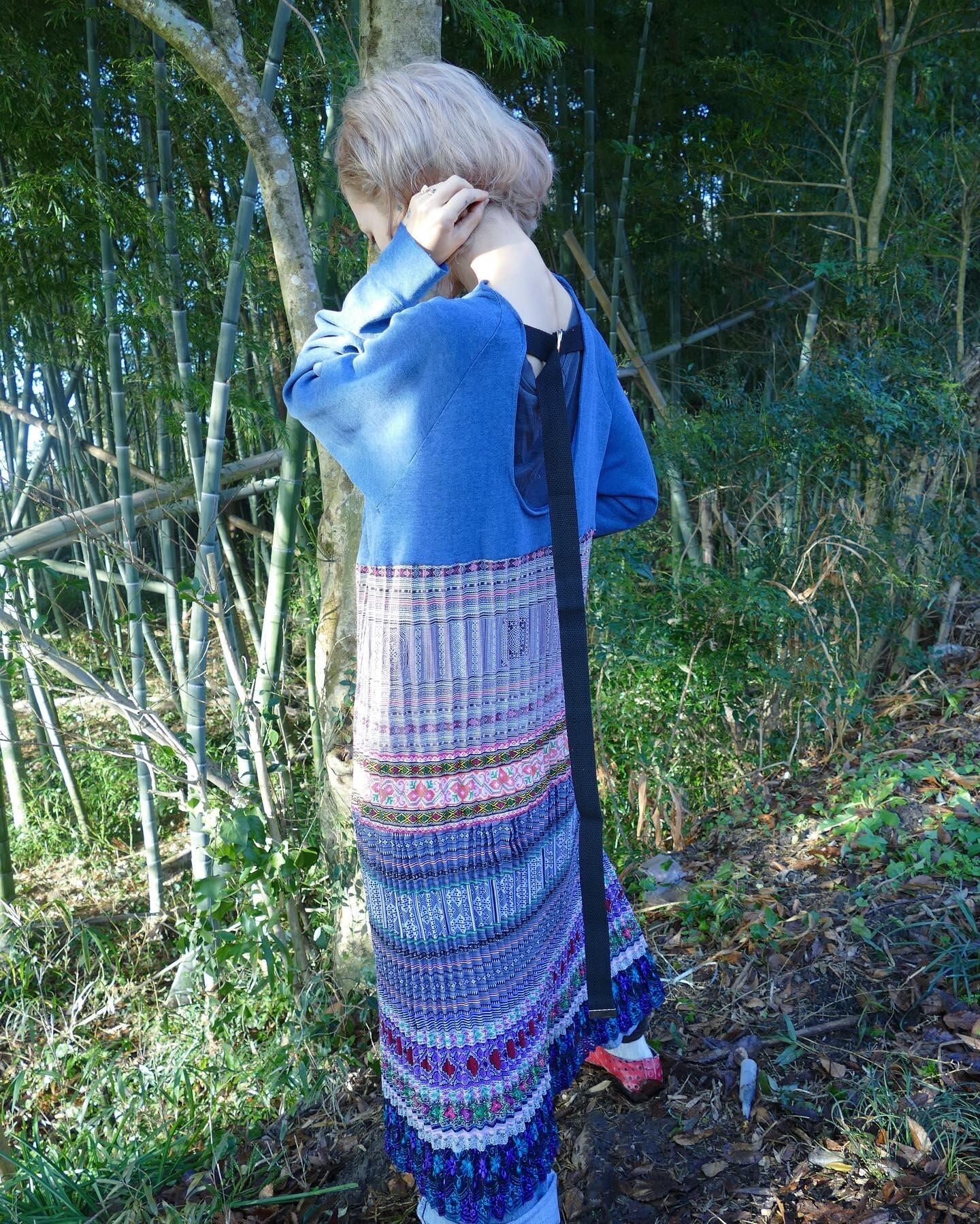 古着のスウェット、ドレス、スカートなどをリメイクしてワンピースに仕立てました。